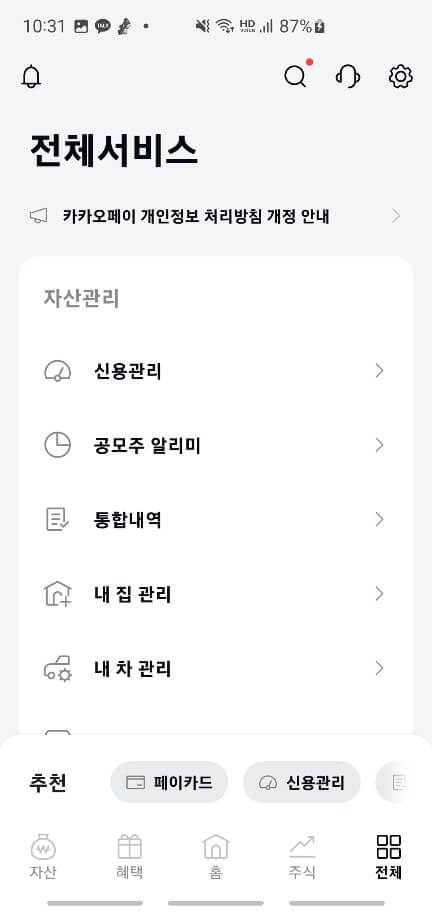 않을시 < 카카오뱅크 모바일앱 - 전체탭